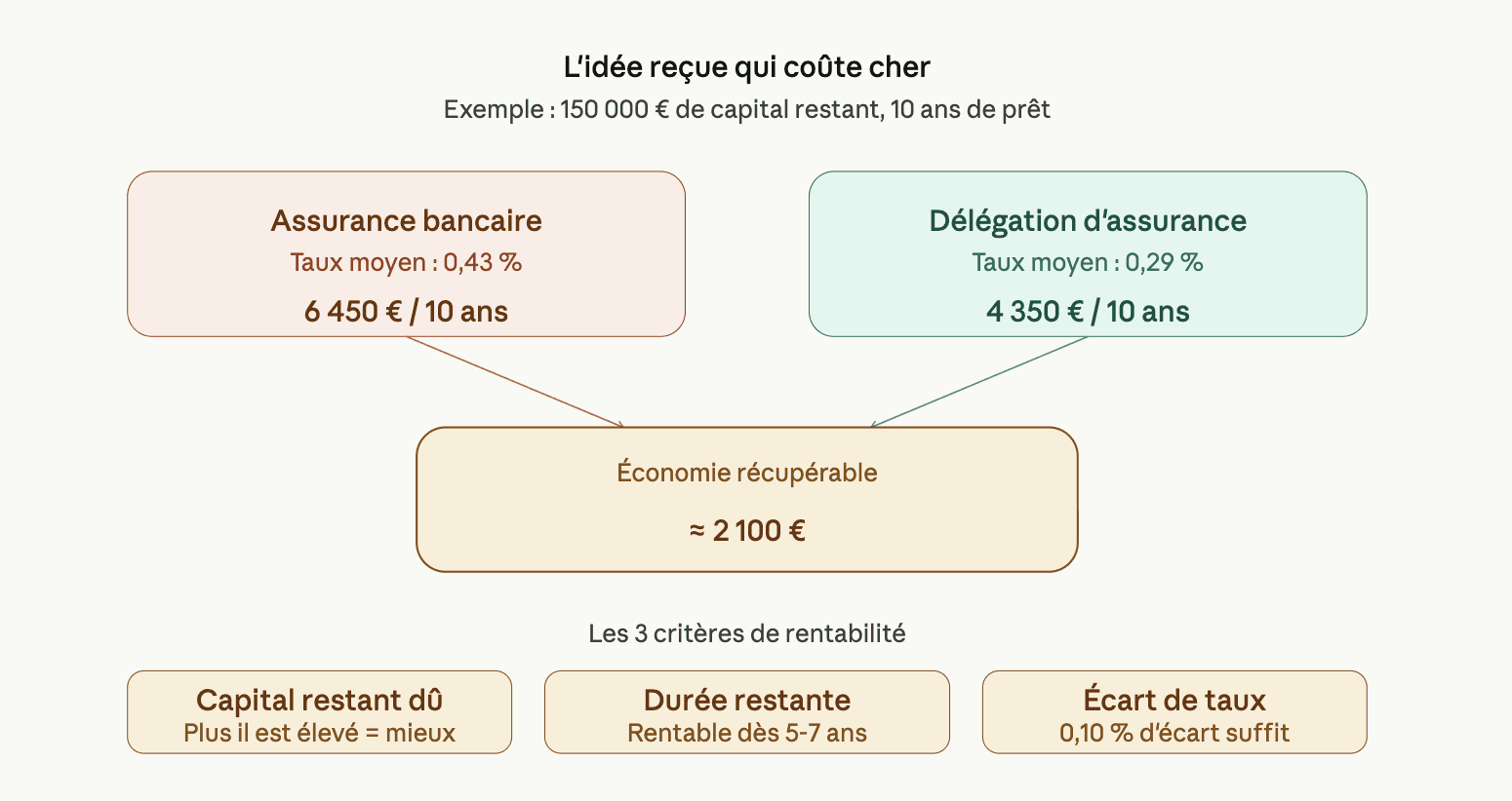 L'écart de taux : si votre assurance bancaire est à 0,40 % et qu'on vous propose 0,25 %, l'opération est souvent rentable même sur 7 à 8 ans restants
